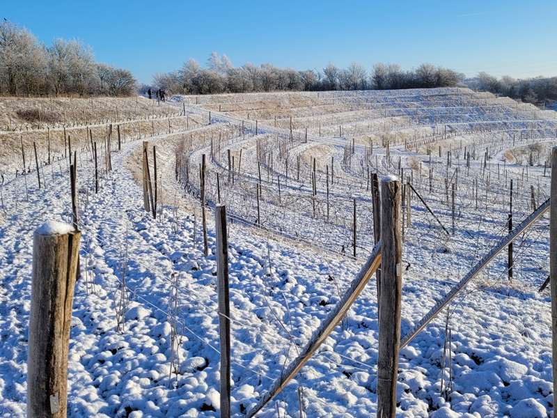 I vinterperioden ligger vingården i dvale. Det eneste, der sker, er vinterbeskæringen hvor vi klipper de gamle grene af. Der er lidt forskellige opfattelser af, hvornår det er optimalt. Nogle gør det i januar andre venter indtil frosten har sluppet i marts.
